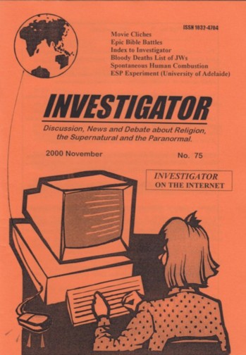 Investigator Magazine is on the Internet.The Home Page ... has six links that in turn link to articles reproduced from Investigator.