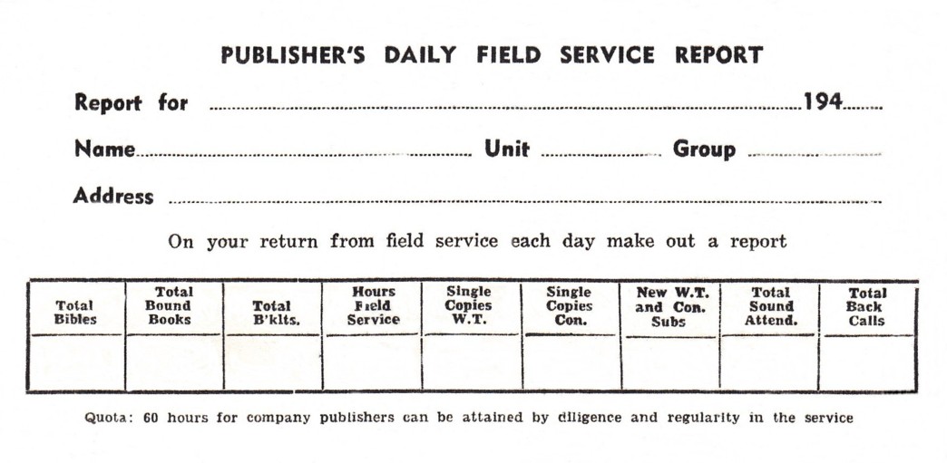103 years JWs counted and reported the hours they spent trekking door