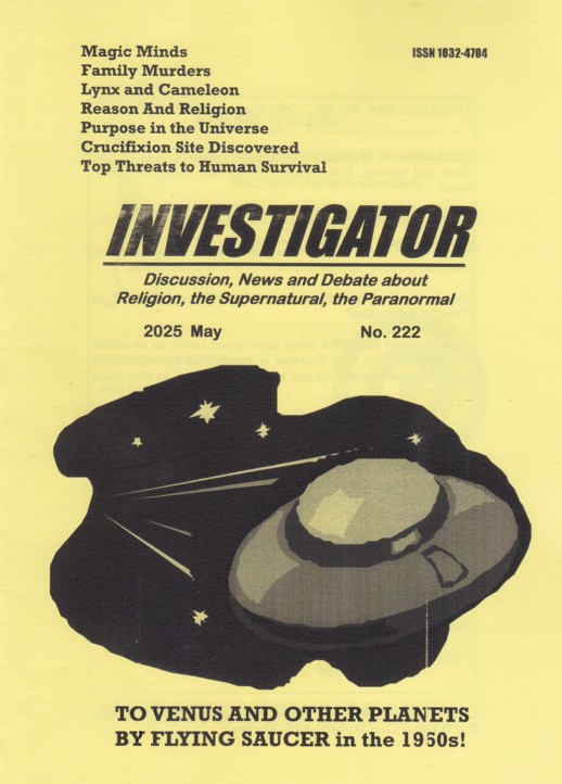 Free in The 1950s For Flying Saucer Contactees (Investigator 222, 2025 May) George Adamski (1891-1965), a Polish-American, was the most famous of the flying saucer contactees and hoaxed the world for almost 20 years. He claimed he encountered flying saucers and flew in them, supported this with photographs, and authored three books Flying Saucers Have Landed (1953), Inside The Spaceships (1955), and Flying Saucers Farewell (1961). He claimed Venus and other planets are inhabited with humanoids and that he himself had travelled to Venus in a flying saucer and met them. Wikipedia provides a thorough refutation of Adamski's claims including the scientific findings that except for Earth all the planets in the Solar System are hostile to life! Adamski's stories were profitable and made him a celebrity. Other people, perhaps inspired by his success, also began to describe interplanetary trips that they had made, including: Truman Bethurum (1898-1969), Daniel Fry (1908-1992), George Van Tassell (1910-1978), Orfeo M. Angelucci (1912-1993), Howard Menger (1922-2009, and Tuesday Lobsang Rampa. The last named was really British plumber Cyril Henry Hoskin (1910-1981). Hoskin wrote 20 books about his alleged occult, paranormal and supernatural experiences as a Tibetan lama including My Visit to Venus (1957). It was virtually all imaginary but Hoskin and his cohorts testified to the veracity of it all. Venus fantasies proliferated in the English speaking world. An example is a 1954 report in The News (Adelaide), September 21, p. 1.