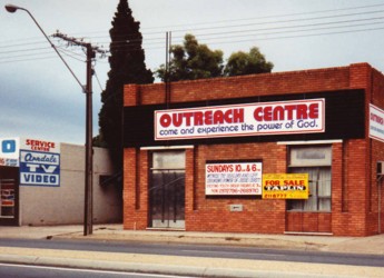 Guest: Catholic. Pastor: Do you speak in tongues? Guest: No. Pastor: You have to be filled with the Holy Spirit and speak in tongues to be saved. Guest: I Corinthians 13 tells that Christian love is more important than tongues. Pastor: We take the whole Bible. Guest: Then you also drink poison and handle dangerous snakes as Mark 16 says? Pastor: No. Jesus said, "You must not tempt the Lord." Guest: Since "tongues" are temporary as I Corinthians Chapter 13 says, aren't you tempting God when you speak in tongues? As a visitor I found the two-hour meeting, which consisted mainly of shouting, boring. The sermon lasted 10 minutes and was about "you must be born again" and "Jesus wants to heal you". The sick lined up in front of [Pastor] Max. He prayed loudly for each individually, usually finishing with "Jesus has healed you" and the person fell over backwards. If the person didn't fall, Max shouted louder and louder, as if trying to blow them over. "You're healed now!" "Heal him now, Jesus!!" "NOW!!!" If after maximum volume is reached and the person still doesn't topple, Max moves on. In mid 1991 the Outreach Centre was sold. I was told that increased attendance had required a move to larger premises. (PD)