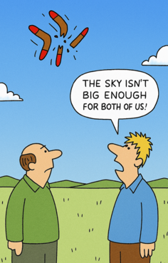 Copilot. AI-generated image of  boomerang throwing. 2025.