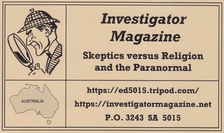 Investigator Magazine is a home-produced magazine, published six times yearly since 1988, examining topics in religion, the supernatural and the paranormal.